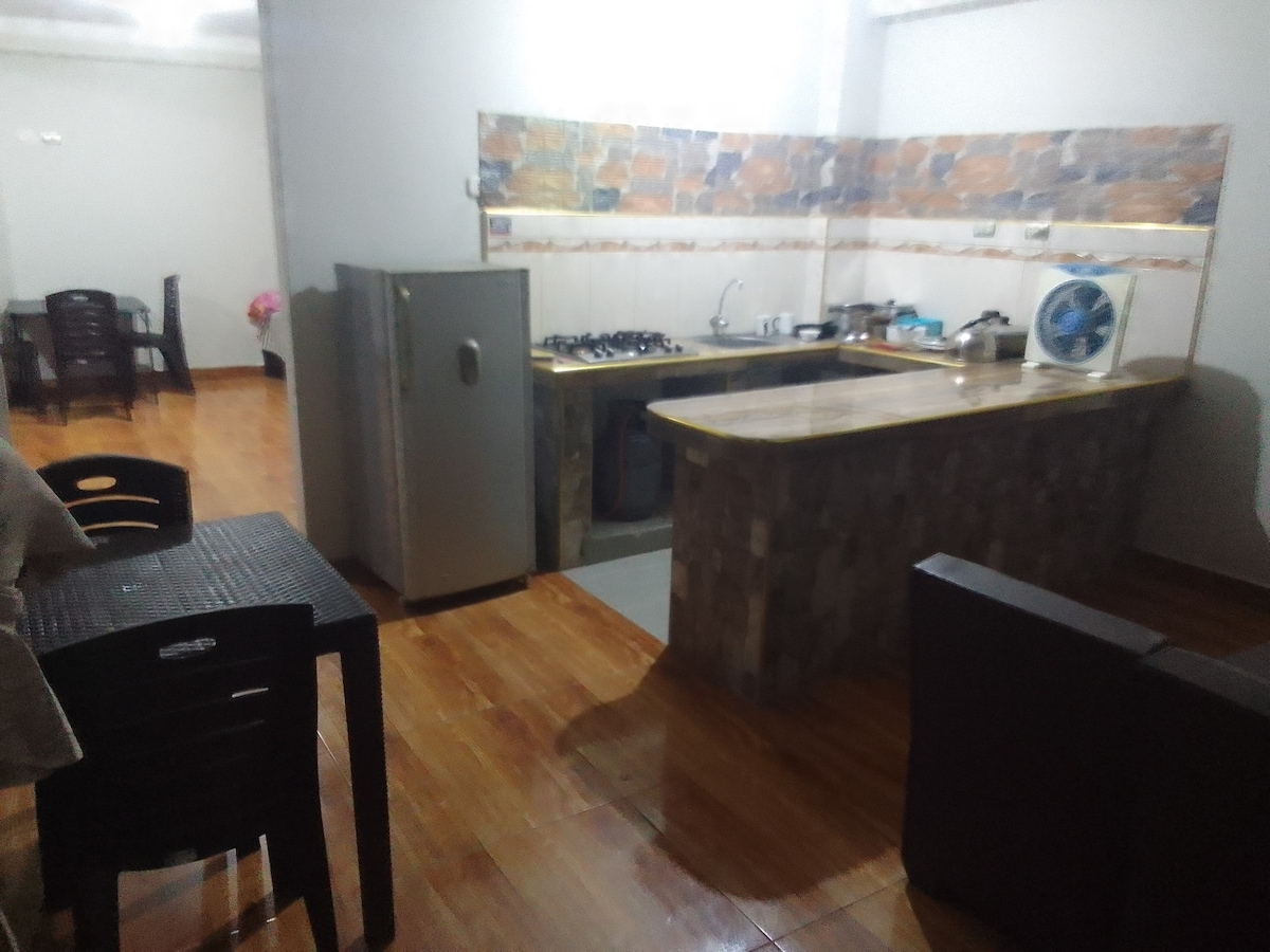 Departamento cómodo y funcional, ideal para viajes cortos o largos. Cuenta con piso de porcelanato, ambiente bien iluminado, cama confortable, mesa y sillas, y TV para tu descanso. La cocina está equipada con refrigeradora, cocina a gas, lavadero y utensilios básicos. Incluye garaje para mayor seguridad y un patio interno que aporta ventilación y tranquilidad. Espacio limpio, práctico y bien distribuido para una estadía agradable.