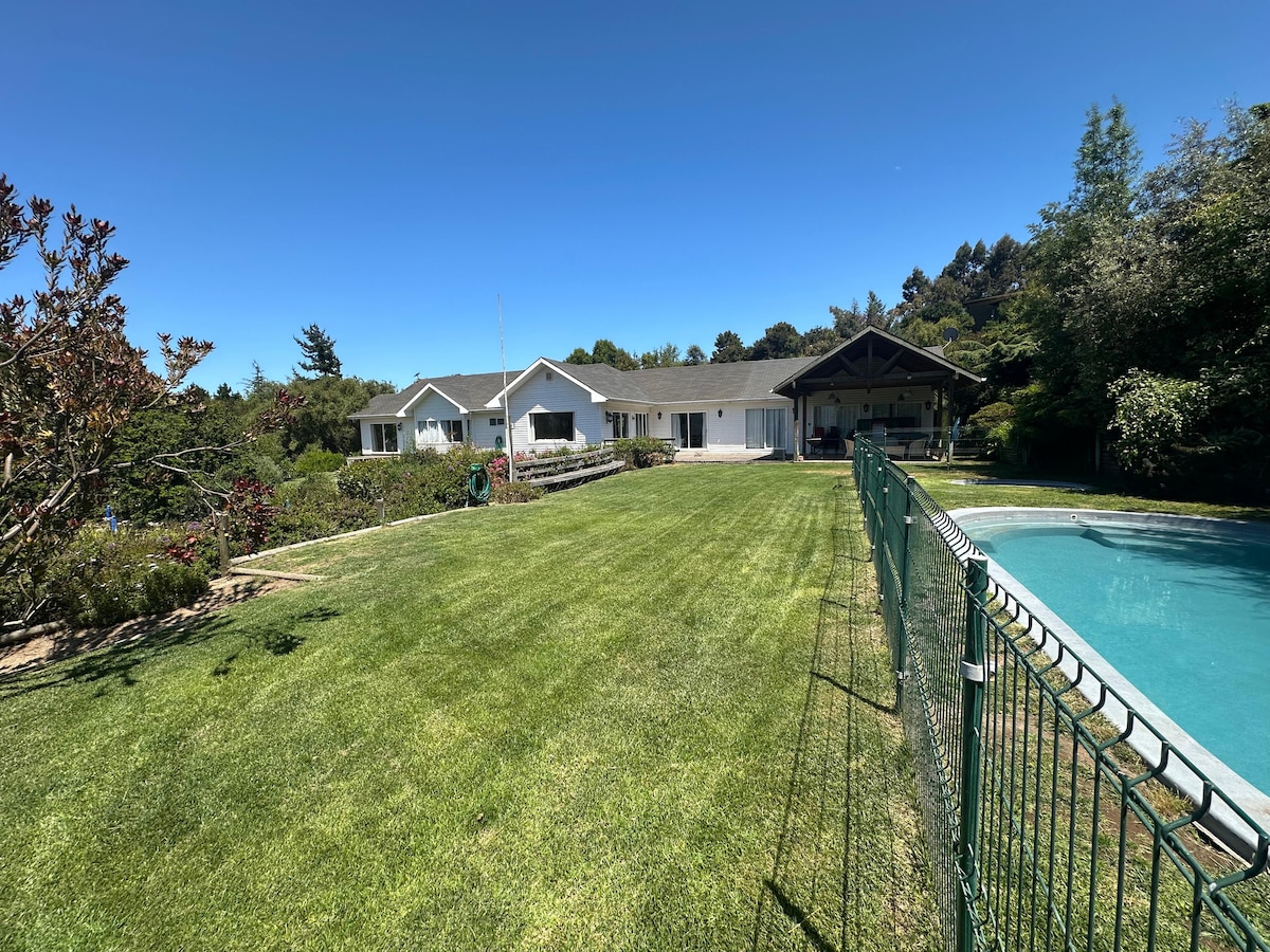 Beautiful large house between Puchuncavi and Maitencillo, Large pool at room temperature. Hot tub (40°), pool table, table tennis, darts, dollhouse, gazebo, and fire pit 11 minutes from the beach by car (8 km) Surrounded by forest, large grass garden with capacity for 14 people in 5 rooms (3 double, 2 of them en suite) very comfortably. Wi-Fi (Starlink 150mb)