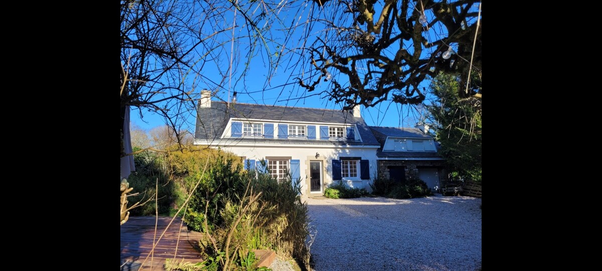 Pretty 3* house, in an old farmhouse and a bucolic setting, lots of charm both indoors and in the surroundings, quiet and comfort assured, new kitchen and bedding, large bright living room with beautiful fireplace, large garden with lounge, deckchairs, barbecue, secure maxi-trampoline, ping-pong... Very well located on the edge of Morbihan and Finistère, beautiful beaches 10 km away, very many excursions and activities possible...