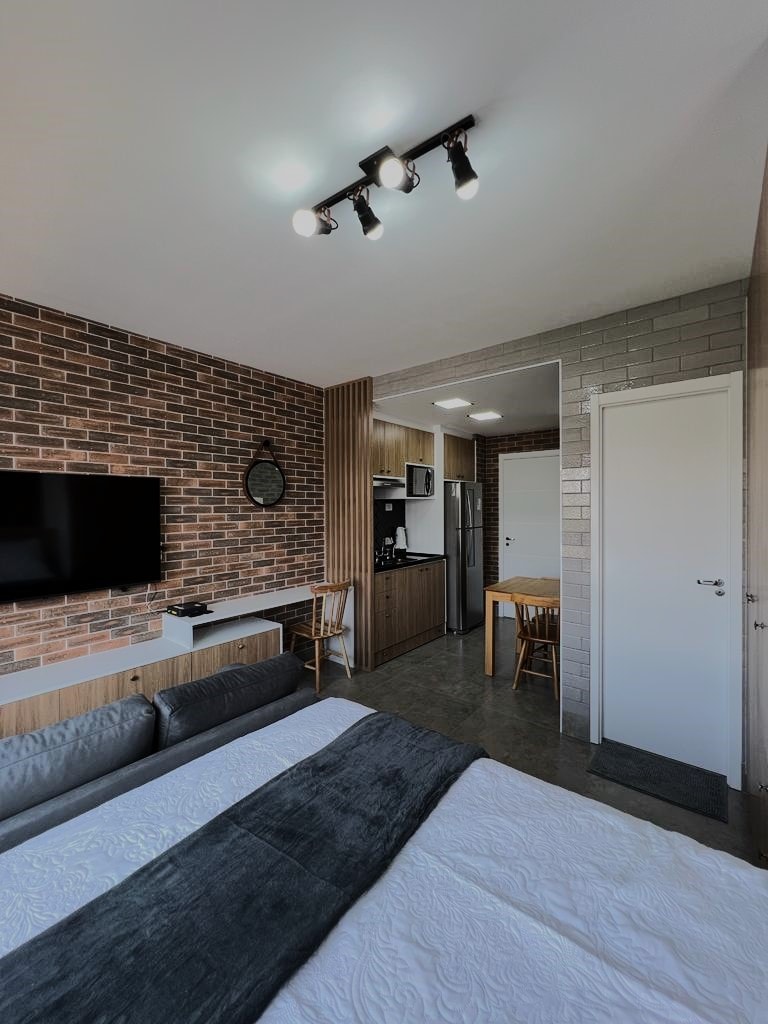 O Studio localizado no Almagah 227, foi projetado com atenção a cada detalhe para oferecer conforto, praticidade e um design moderno. O móvel flexível que vira sofá garante melhor circulação e pode ser usado para reuniões ou momentos de descanso. Há área exclusiva para refeições com futon e mesa, cozinha equipada com geladeira, armário espaçoso e cafeteira de expresso. A iluminação versátil e a smart TV grande completam a experiência.