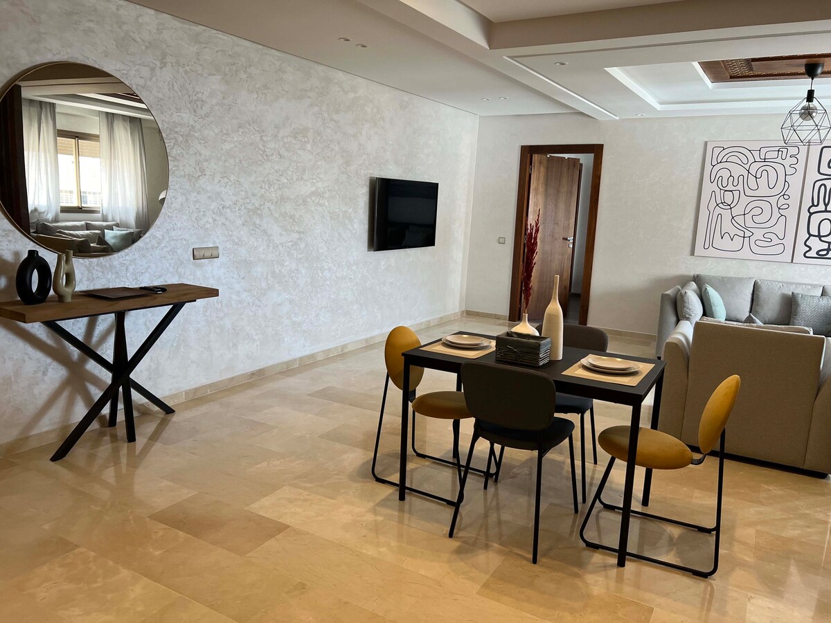 Élégant 90 m² Appartement avec un Salon spacieux et une grande suite parentale. Spacieux et confortable, idéal pour les couples, familles et voyageurs d’affaires ✅ Self check-in 24h/24 ✅ Terrasses dans tout le logement ✅ Résidence sécurisée+parking ✅ Wifi/Netflix/IPTV ✅ Cuisine équipée, 2 salles de bain 🔆 Vue panoramique depuis la suite parentale Emplacement stratégique : à seulement 5 minutes à pied du stade Prince Moulay Abdellah, parfait pour ne rien manquer des matchs de la CAN 2025