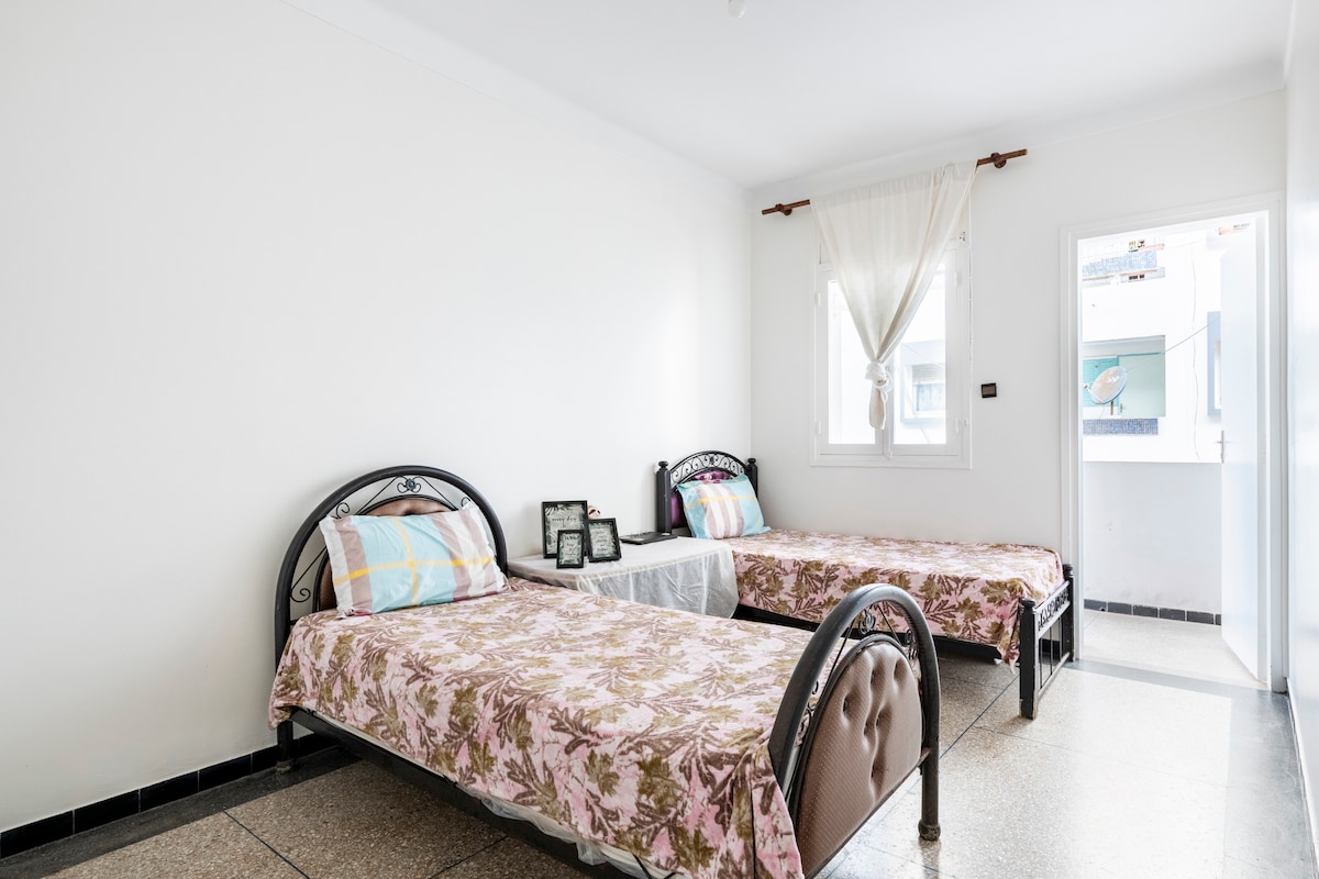 Comfortable room, located in the heart of Rabat, just a 5-minute walk from the Kasbah of the Oudayas and the Hassan Tower. You will be close to historical sites and shops. Services: Traditional Moroccan breakfast for 40 dirhams per person. House Rules: No alcohol or smoking allowed. Book now for an authentic experience in Rabat!