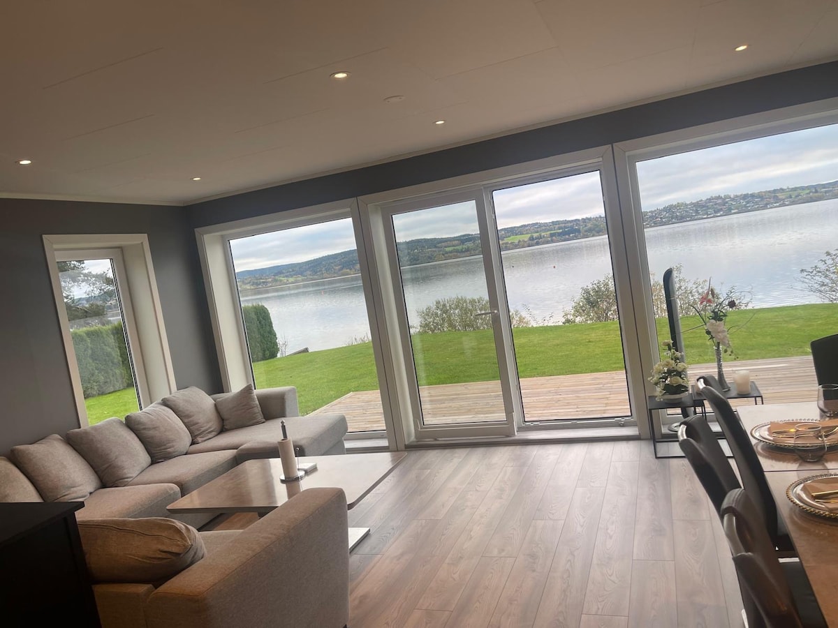 Relax with the whole family at this peaceful residence. Lower floor of a large detached house with garage and several parking spaces in Fjerdingby. The house has a lovely view over Øyeren. The house is newly renovated with several upgrades, including a new bathroom and living room. The house has a jetty and a large garden.
