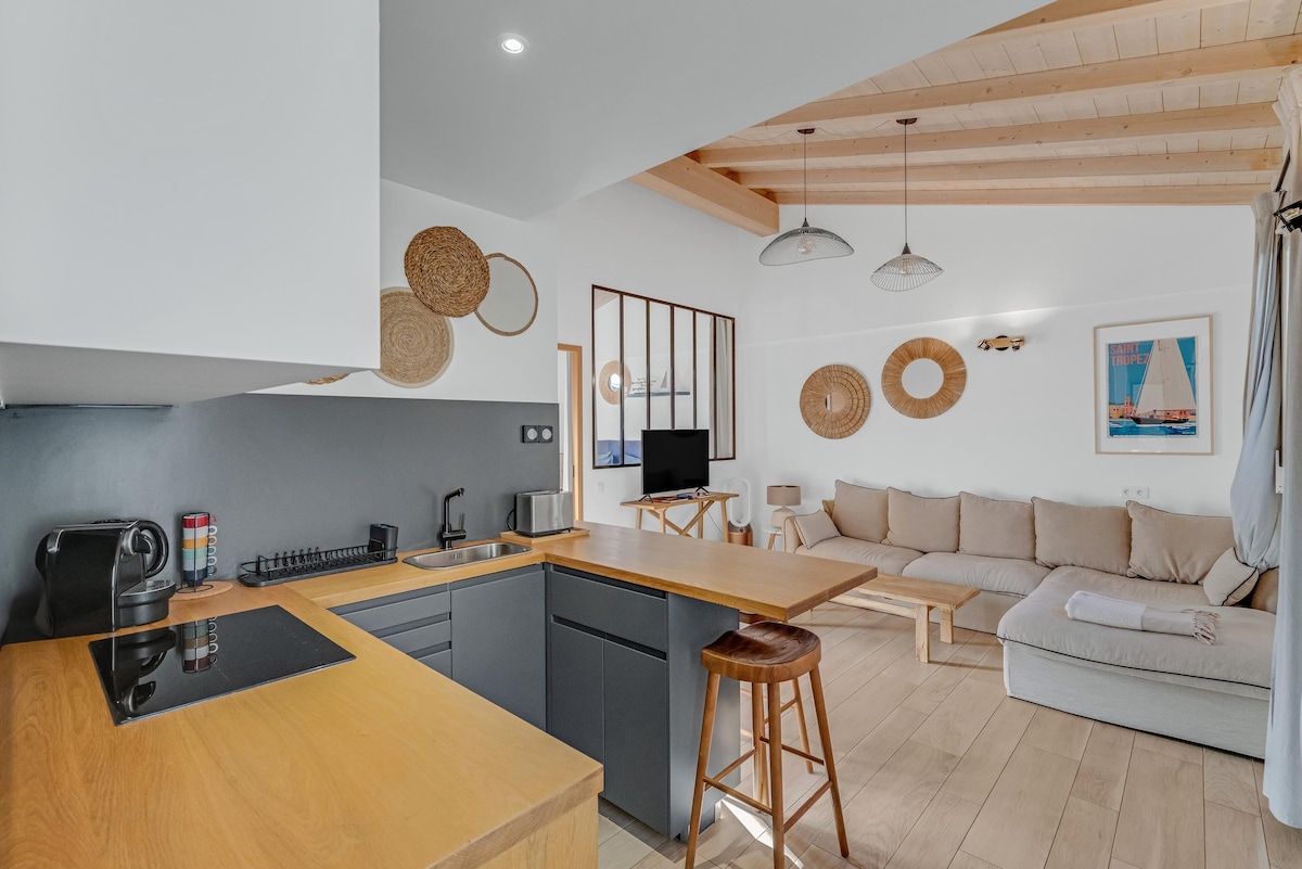 Charmant mazet entièrement rénové, à seulement 5 minutes en voiture des plages de Pampelonne. Un cadre calme, naturel et privilégié, idéal pour se détendre tout en restant proche des plus belles plages du Golfe. ✨ Les points forts • Plages de Pampelonne à 5 min en voiture • 2 places de parking privées gratuites • Climatisation réversible • Accès facile • Linge de maison fourni (draps & serviettes) •Service de conciergerie à votre disposition