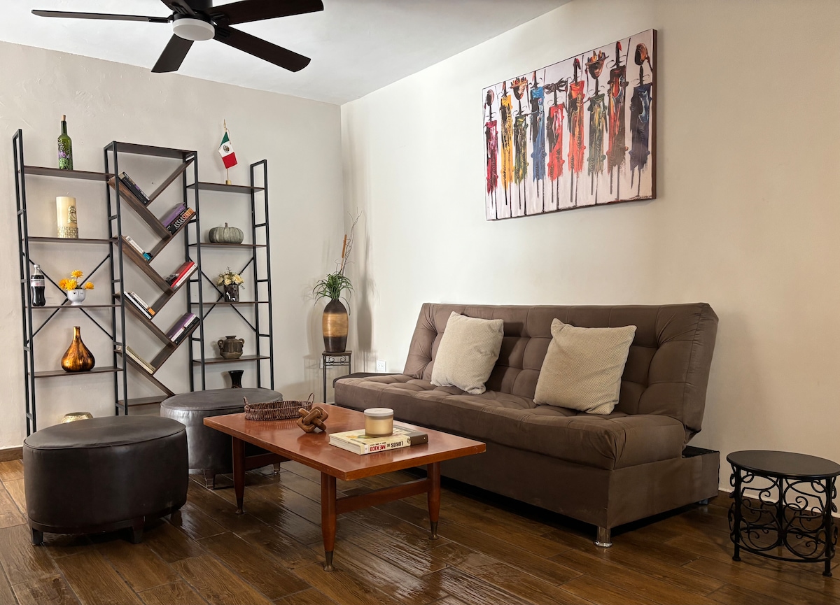 Enjoy a comfortable, quiet and safe stay in this charming two bedroom house, with a strategic location one block from one of the most important roads so you have access to anything you need. It features 1 queen bed, 2 twin beds and a sofa bed ideal for small groups looking for rest and style. Its design combines elegance and comfort, modern decor and all amenities; close to malls, shops, and others.