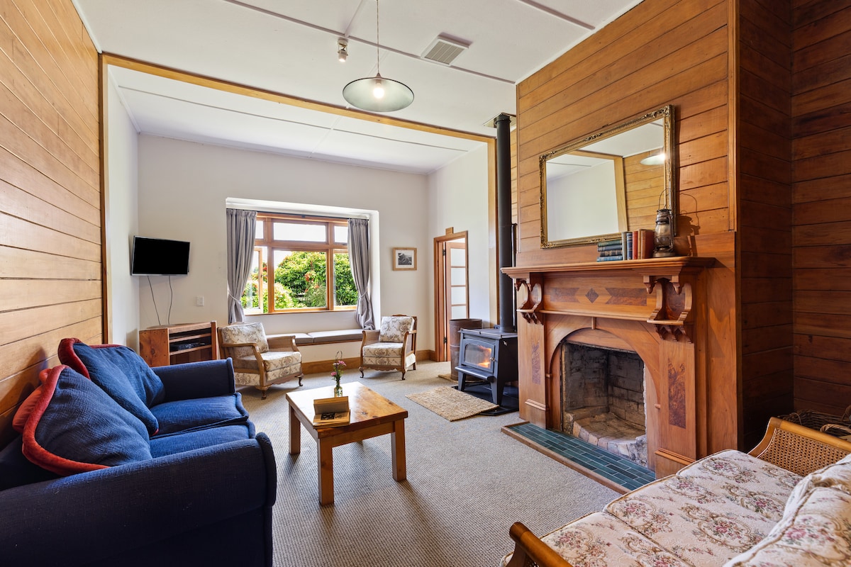 Come back in time with us. Just 24km from State Highway 1 you enter the hidden world of Rangiwahia. Rangiwahia is quiet, ideal for downtime or a good nights sleep whilst travelling. Enjoy relaxing on a sun soaked back porch with birds swooping by, or cuddle up by the fire when it's chilly. 3 neighbouring Native Reserves give a range of Bush walks. It's a great base for local activities. Clear creek to cool down in or great swimming holes only a short drive. We are on the NZ Cycle trail.
