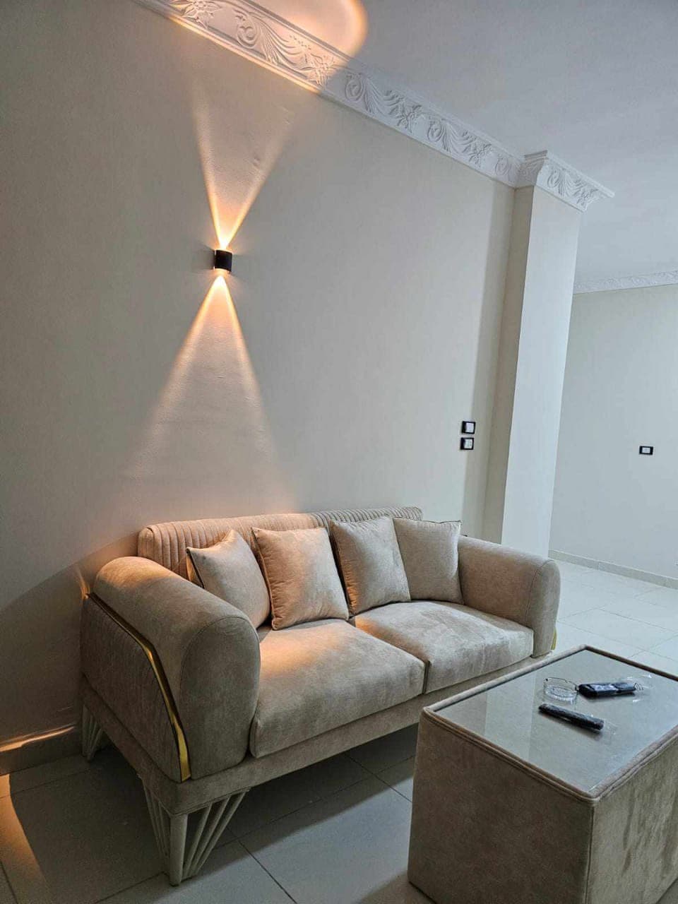 A high-end apartment in the heart of New Damietta – a distinctive view and an exceptional location! Enjoy a comfortable stay in a furnished apartment in the best location in the central area of New Damietta, in front of "Ali Crepe and Kashri Al-Zaeem". The apartment features: Attractive location on a main street, close to services and restaurants. An elevator in the building for the comfort of guests. 3 air conditioners to ensure a perfect atmosphere all year round. Extra fans for excellent ventilation. Elegant and clean furniture that provides a comfortable and luxurious stay experience.