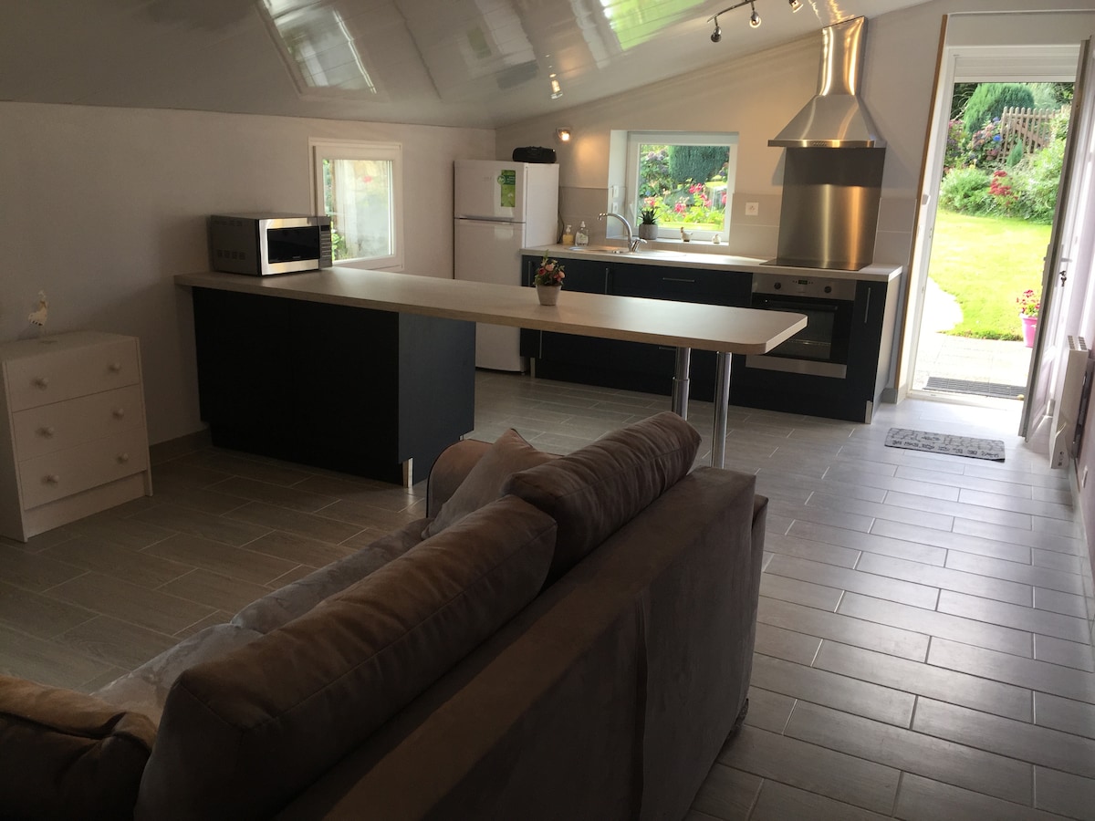 In a wooded park with washhouse and pond, quiet cottage in a renovated 16th century building. The cottage has a large room with fireplace, a spacious fully equipped kitchen (oven, induction hob, dishwasher...), a bathroom with shower, toilet, and washing machine and hand wash, two bedrooms with double beds and one with bunk beds. 10 minutes from the beach and 15 minutes from Cherbourg. DCNS, AREVA, EPR 20 min away, long-term rental possible