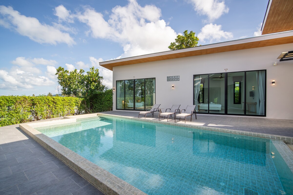 Luxury villa with modern design and private pool, perfectly suited for your stay with family or friends. Located in a peaceful area, close to all amenities, and the beaches of Rawai and Naiharn, this sumptuous villa has a swimming pool entirely covered with marble, and equipped with a saltwater filtration system. Inside, you will have 140 m2 divided into a large living room open to a fully equipped kitchen, as well as 3 bedrooms with private bathroom.