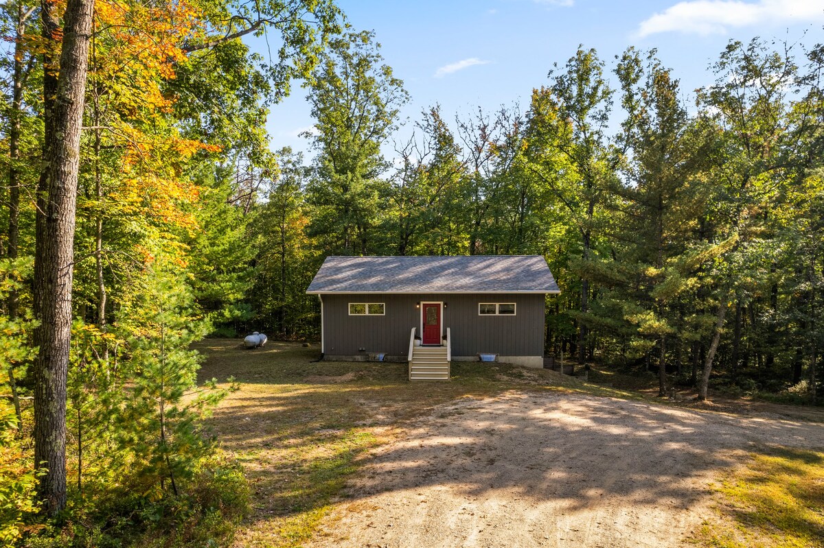 Take a step back in time and enjoy this unique and tranquil getaway. Red Pine Cabin is secluded and set back 3 acres along the drive. Although there isn't much room to roam on the property itself, there is access to the Pere Marquette Rail Trail only a short drive North. The cabin is just off the highway in farm country, and is described as peaceful with a cozy interior. You may however hear some road noise if you are relaxing outside. The small town of Barryton is located a mile to the South