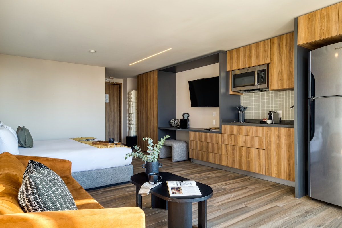 Experience comfort, convenience, and culture from the perfect base in Mexico City. Our fully equipped studios offer everything you need for a productive and restful stay including a dedicated work desk, private bathroom, TV and soundproof windows whether you're traveling for business or leisure, you'll feel right at home. Surrounded by museums, parks, restaurants, and cultural attractions, our property puts you in the middle of it all.