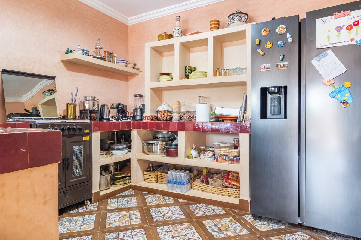🌿 Private, bright and spacious riad in the heart of the medina. 5 bedrooms with private bathrooms, patio pool, large terrace and pétanque court. Included: Daily housekeeper Night watchman 24/7 butler for excursions, transfers, arrivals/departures Fast Wi-Fi, air conditioning, equipped kitchen, comfortable living rooms. 10 min from Jemaa el-Fna. Ideal for families, friends or retreats.