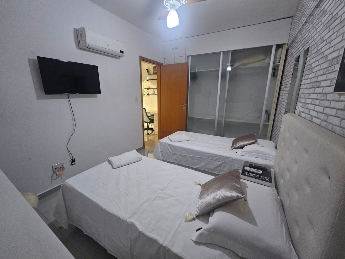Our space is new and has air conditioning in the bedrooms. It is decorated and equipped with everything you need to accommodate up to 4 people. Located in one of the best neighborhoods in the city, close to malls, parks, supermarkets, restaurants. We have a double bed and 2 single beds. With 1 covered parking space. The condominium has a gym, swimming pool and 24-hour doorman.