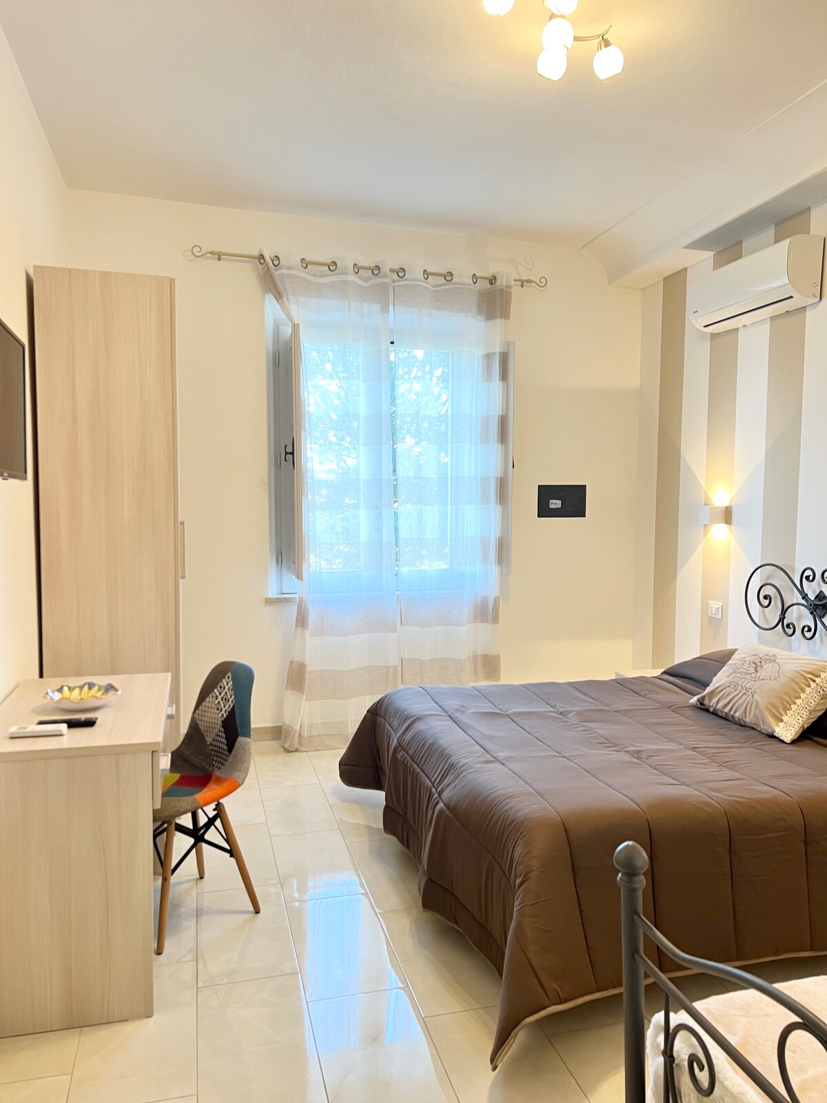 Modern, brand-new apartment recently renovated and nicely furnished, perfect for your stay in Tropea. Located in a central area, everything is within walking distance, so no car is needed. Just 150 meters from the historic center and a 10-minute walk to the beach. The apartment includes a bedroom, bathroom, laundry area, and a spacious open-plan kitchen with a cozy sofa corner. Enjoy sea and historic center views from the window. City tax not included: €1.50 per person per day.