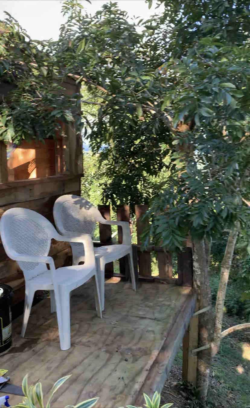 Rustic cabin built from recycled materials, suitable for all types of people. Located around native trees of Puerto Rico to enjoy its flora and fauna. It has a double bed (full), portable toilet for use with biodegradable gel. Balcony with rocking chair. Mini BBQ and outdoor chairs and parking.