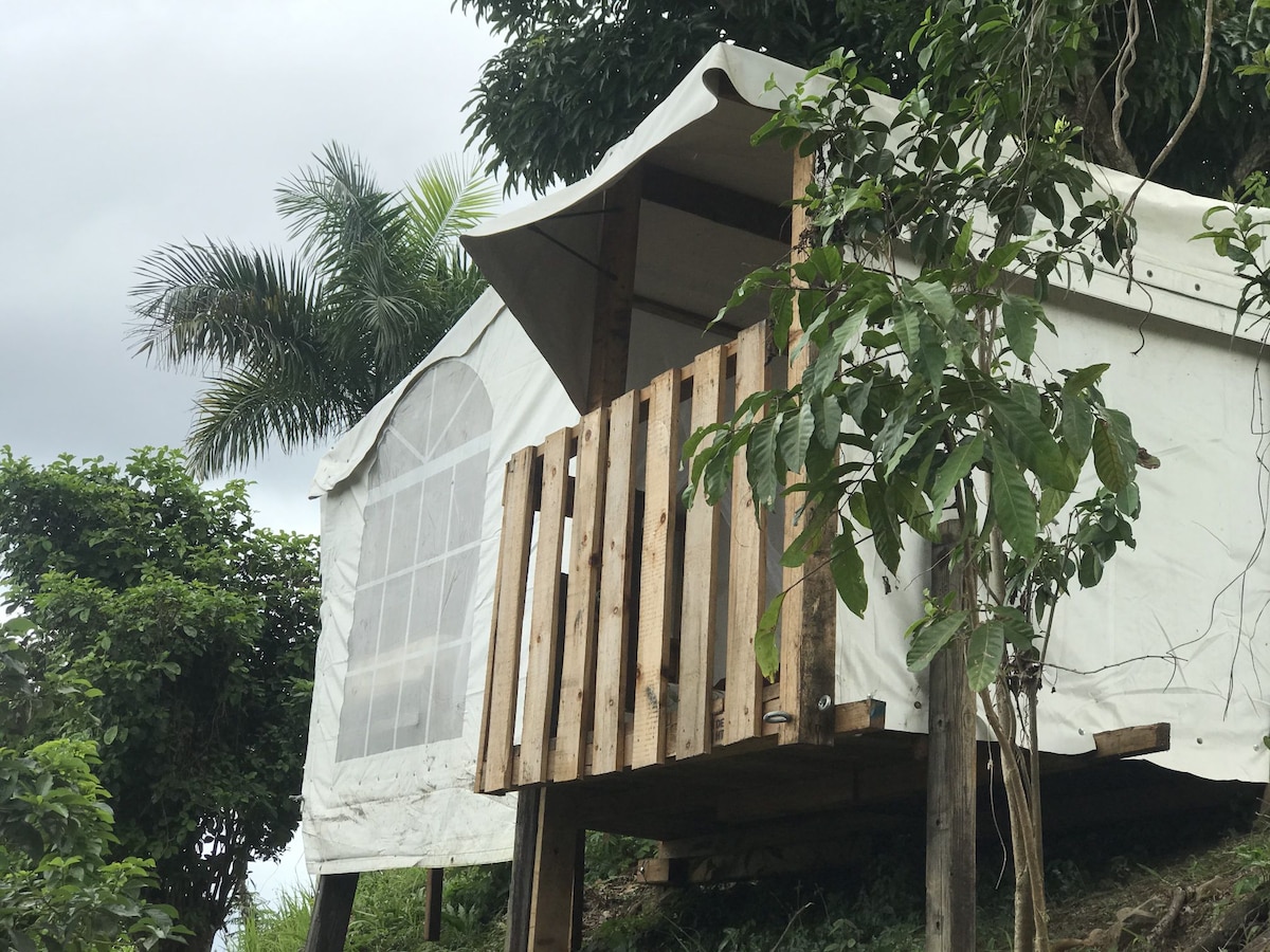 Saludos: Las cabañas están construidas con madera rústica eco amigables, tratadas con producto reciclado. Hechas con canvas también reciclado a la forma en que el espacio y la naturaleza nos permitan, arropadas de un entorno natural lleno de las maravillas de la flora y fauna del área. Para el disfrute de todos, bienvenidos!
