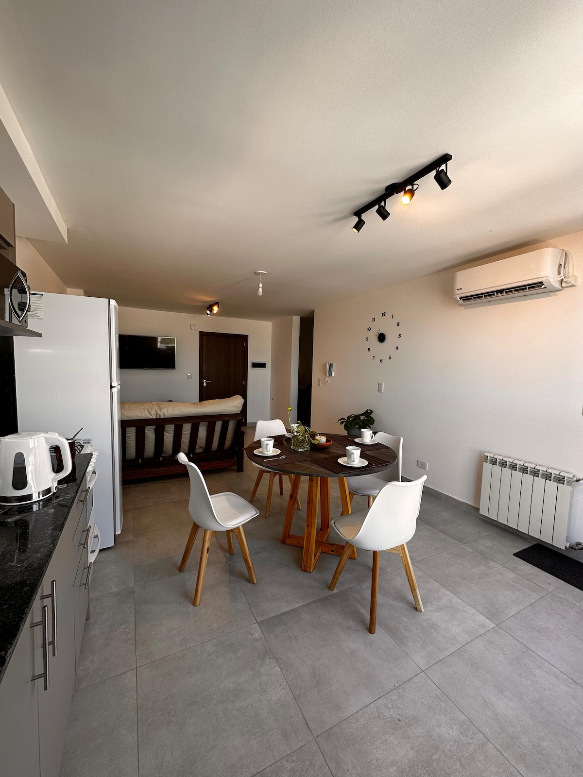 Brand new modern apartment 7 blocks from Plaza Roca. 1 bedroom with queen size bed and 300 thread count Egyptian cotton sheets. Bathroom with antebathroom, bidet and toilet. Living room with sofa bed (single bed base) ideal for a third person and Smart TV with cable. 300 megabyte WiFi. Single kitchen, refrigerator with freezer, microwave, stove, complete dishes and iron. Hot/cold air in the living room and bedroom. Pool. SUM with reservation and subject to availability. Optional cleaning service.