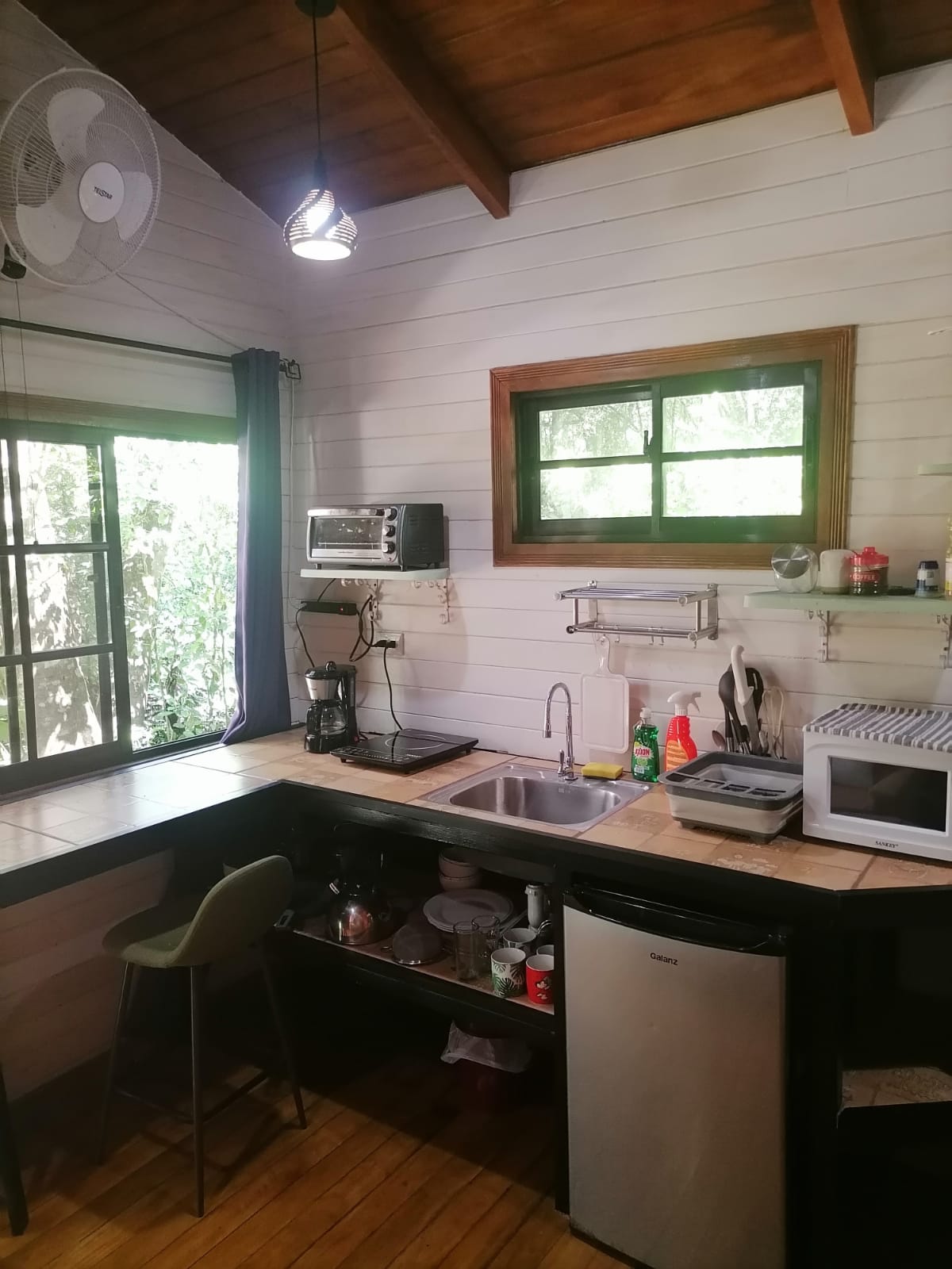 A wooden cabin, fully furnished, ready to use. Our cabin is located 300 meters from downtown Hojancha where you can find all kinds of services. Carrillo Beach is 35 km away, and Punta Islita, Camaronal Wildlife Refuge, Corozalito Beach, and Samara are less than 50 km away. Hojancha has the highest waterfall in Central America at 350 meters high, Salto del Calvo waterfall is located 14 km from the cabin. The area is ideal for hiking and running.