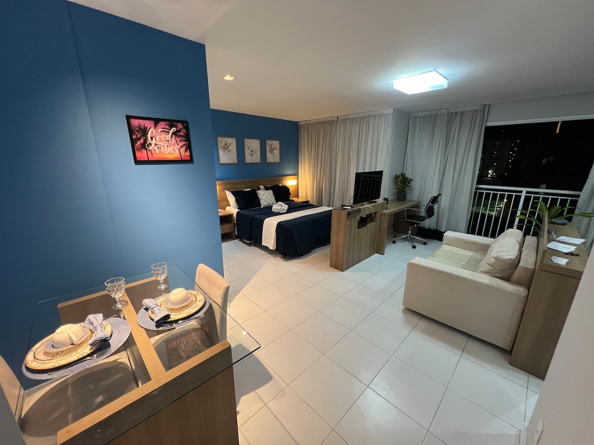 Private suite, independent, well-located, comfortable and cost-effective. *Not a hotel* Near Riocentro, Olympic Park (Rock In Rio), Farmasi Arena, Qualistage, Shopping malls, parks and beaches - 50” SmartTV - Air conditioning - Coffee machine - Microwave - Balcony - Private parking - Workout gym - Front desk 24hrs The condominium also has with separate payment: Salon of Beauty Laundry Car Rental Electric Car Charger Luncheonette Mercadinho 24hrs