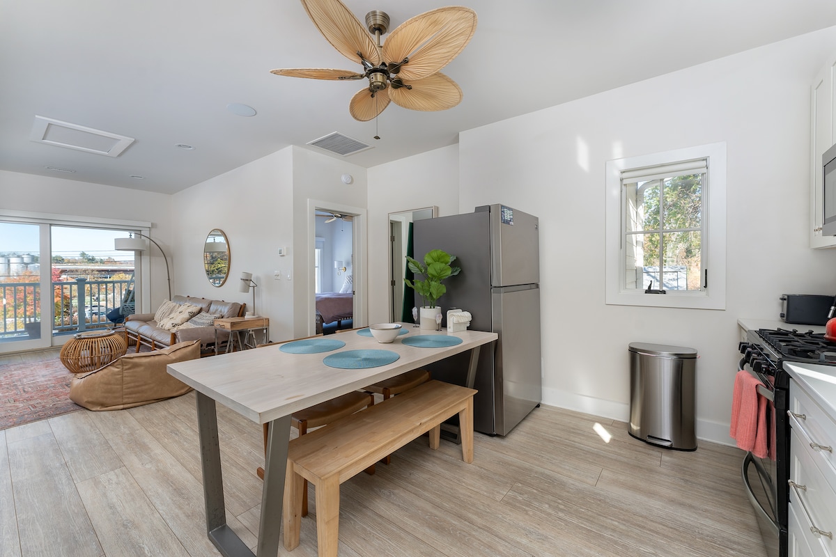 Set sail in this cozy, light-filled Asheville studio lovingly known as The Pirate Ship. This thoughtfully designed retreat features a queen bed, kitchenette with coffee & tea, and a spa-style shower. Enjoy your morning brew at the outdoor bistro table or write from the small desk inside. With private entry, peaceful seating, and a location walking distance to downtown, West Asheville, and the River Arts District. This compact retreat feels like stepping aboard a tiny ship built for calm seas.