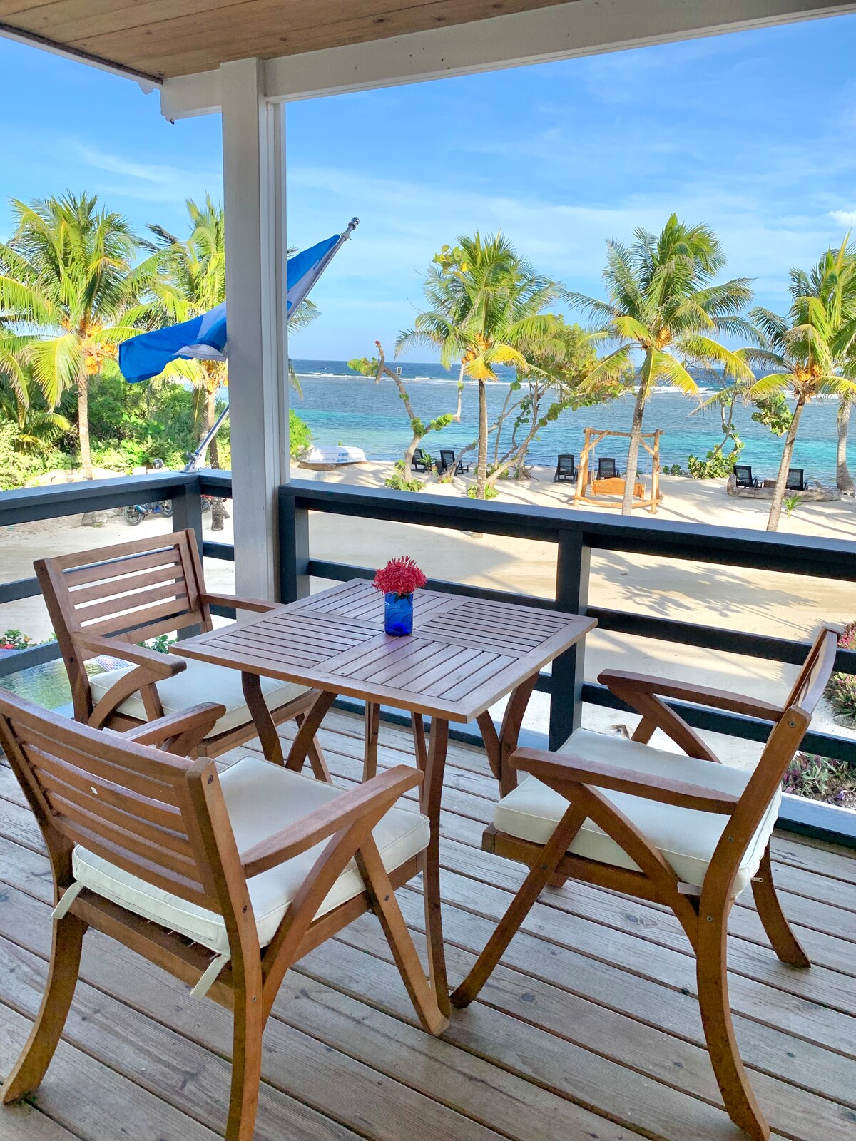 Forget your worries in this tranquil and serene place. This is 2nd brand new wooden house on our beach property with Ocean view, it's 2 store house, downstairs is kitchen with living room area and half bathroom, upstairas is bedroom with full bathroom and porch with hammock. It's on private beach, with Ocean view and access to the dock to snorkel and relax