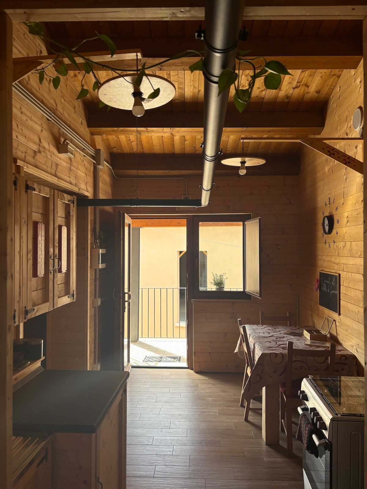 Cabin of about 40 square meters built with Canadian-style wooden logs, the house consists of a living room with kitchenette, fireplace and sofa bed, double bedroom and bathroom. the cabin has a perimeter garden for exclusive use and a small veranda. The house is tastefully furnished in rustic style and equipped with everything you need for a carefree stay. the owners live permanently in a cabin located on the same land