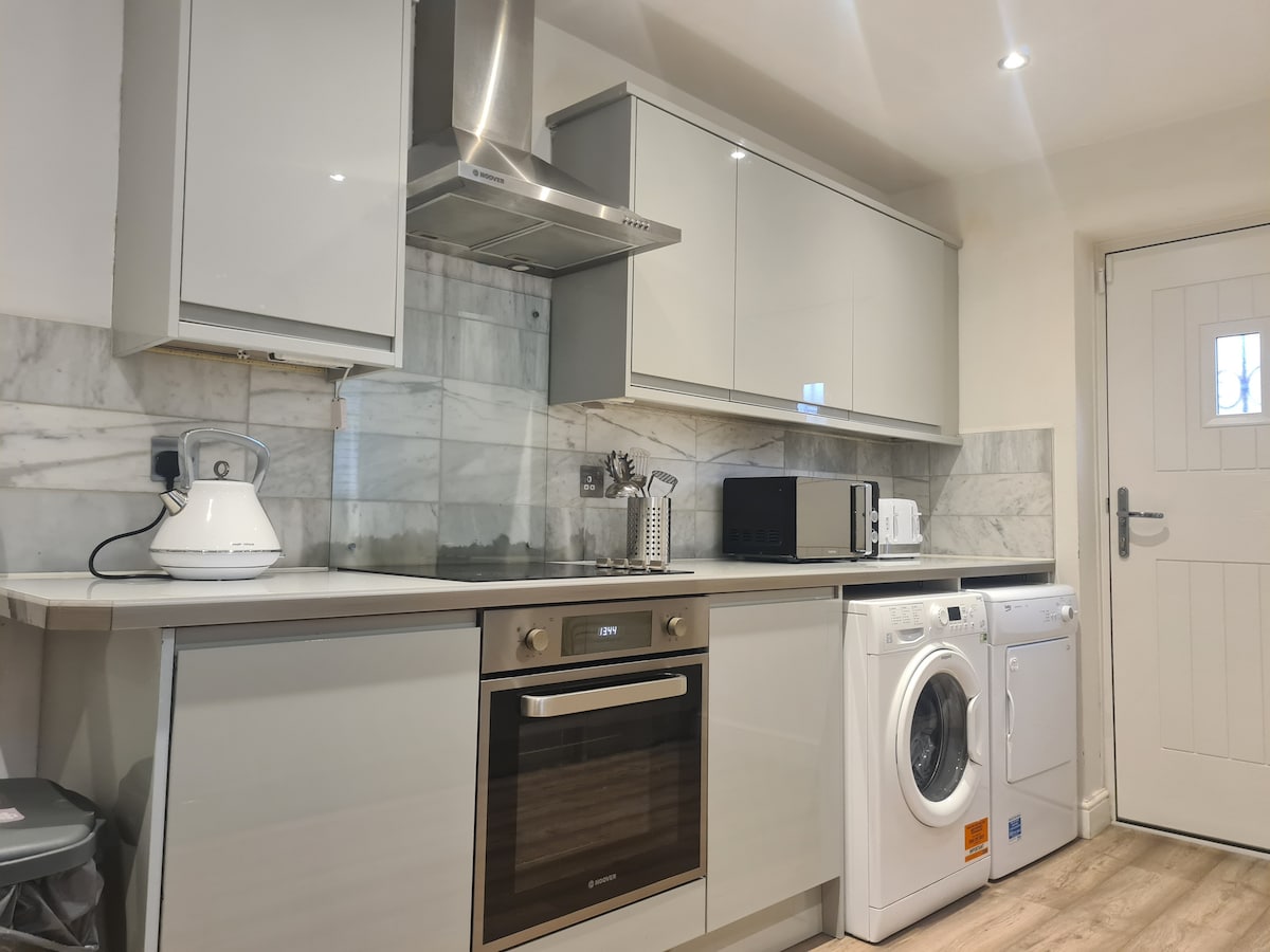 One bedroom flat with private entrance and exclusive-use hot tub, just 10 minutes walk from Ramsbottom’s vibrant town centre, packed with shops, restaurants, and the heritage railway. Enjoy nearby panoramic countryside walks and explore all Greater Manchester has to offer. Ideal for couples or solo travellers. Includes a double bed, full kitchen, WiFi, TV, washer/dryer, central heating, and secure parking. M66 is 5 mins away; Manchester in just 30.