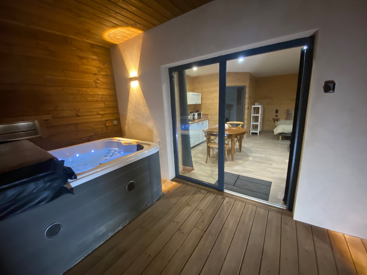 La Cabane aux Coeurs, improved private room. Comfortable double bed and bathroom. Small kitchen area with induction hob, mini oven, fridge, dishes, coffee maker and kettle. View of Lac de Gerardmer and its mountains, private terrace, free parking space. Wellness Institute below, massages by appointment. We welcome you one or more nights, breakfast at extra cost by reservation. Looking forward to welcoming you!