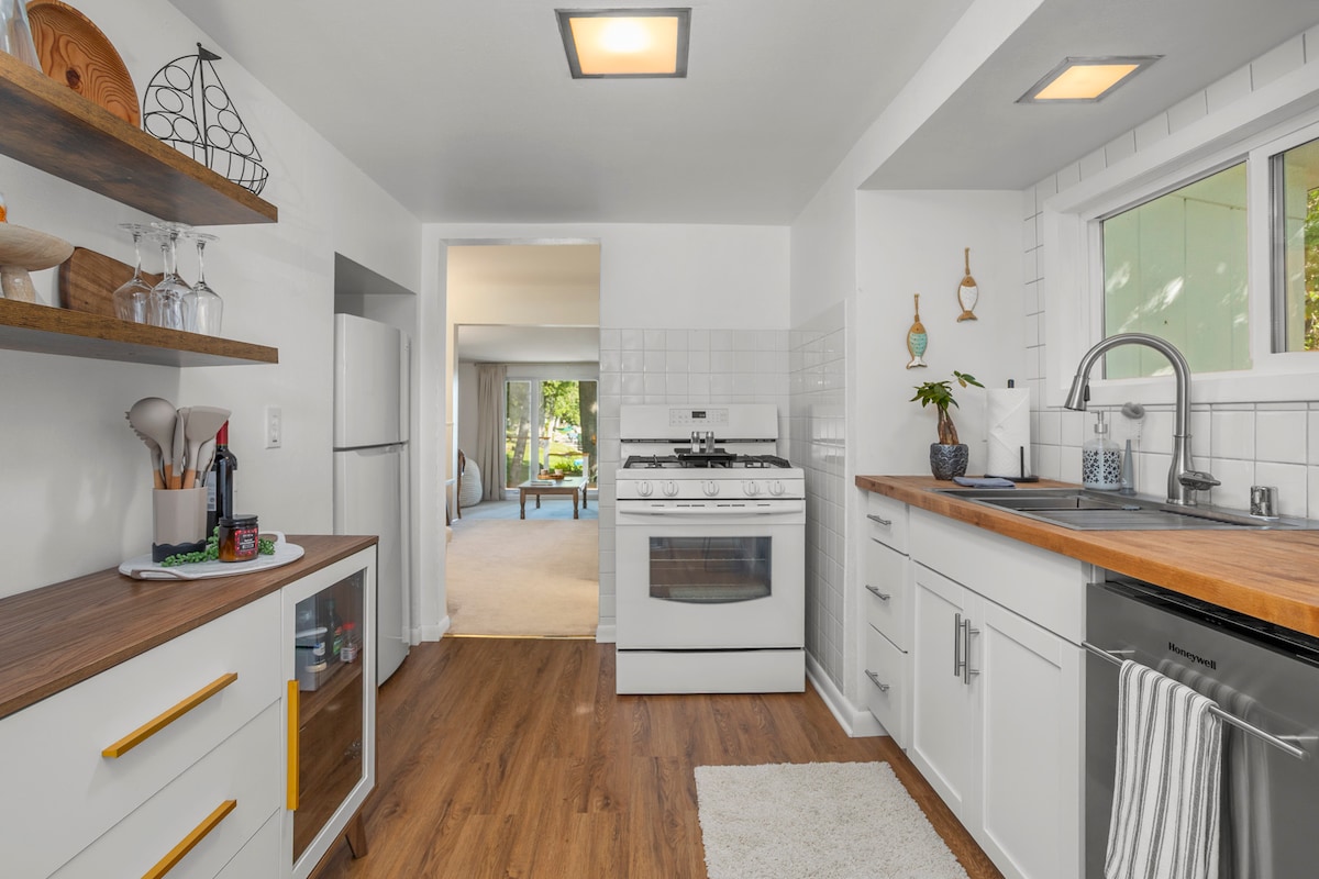 There is absolutely nothing else like it available, and you’ll agree as soon as you step foot inside! This beautifully designed home makes your stay comfortable with it's high end furnishings, bedding, towels, mattresses and dishes. Kick back and relax in this calm, stylish space. Fully fenced backyard great for dogs, entertaining and room for kids to play. Private work space available too! All bedrooms have room darkening shades!