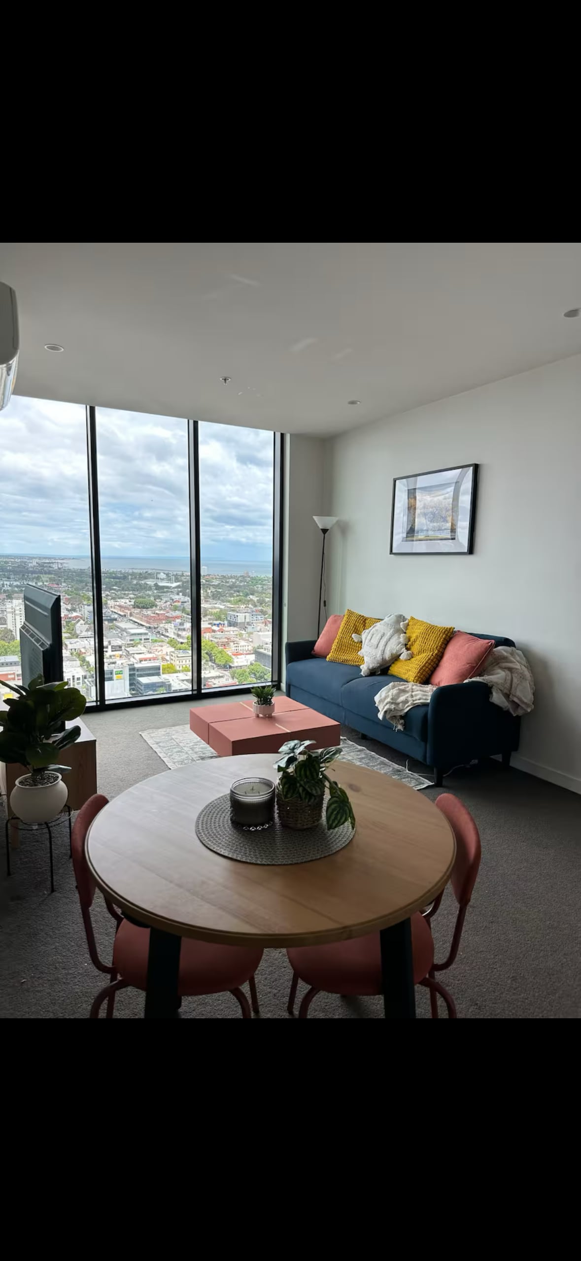 *40 night max stay with option to extend at owner’s discretion Unique getaway on the fringe of Melbourne with stunning city views from level 15 of The Emerald building. Park & bay views from the rooftop garden, with free BBQ and hot tub BBQ in the park out front too Enjoy dinner or drinks on your private balcony. Secure entrance to building Q bed & sofa bed options Walk to Rod Laver arena, Myer music Bowl, Botanical gardens, NGV, Arts Centre & CBD Anzac station NOW OPEN opposite No pets
