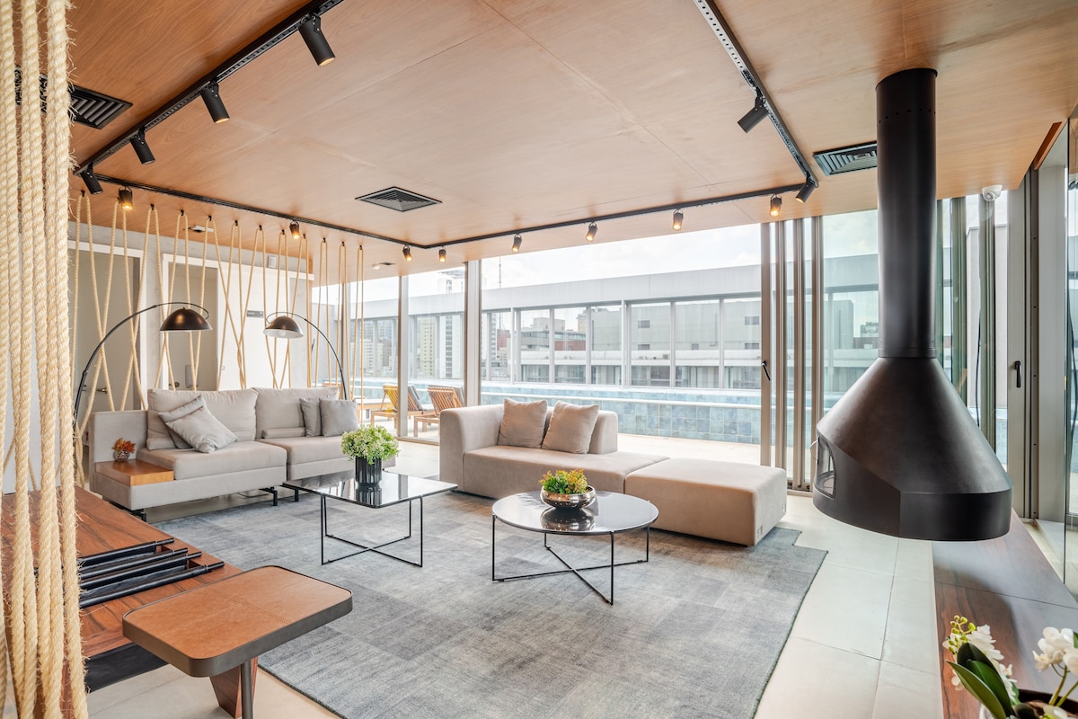 New Studio with Panoramic View — 24th Floor with Infinity Pool and Style! Enjoy São Paulo in comfort and style in our lovingly assembled studio to welcome you. Located on the 24th floor with *180° glazed view of Marginal Pinheiros*. A modern retreat, ideal for those seeking practicality, convenience and a differentiated experience in the city.