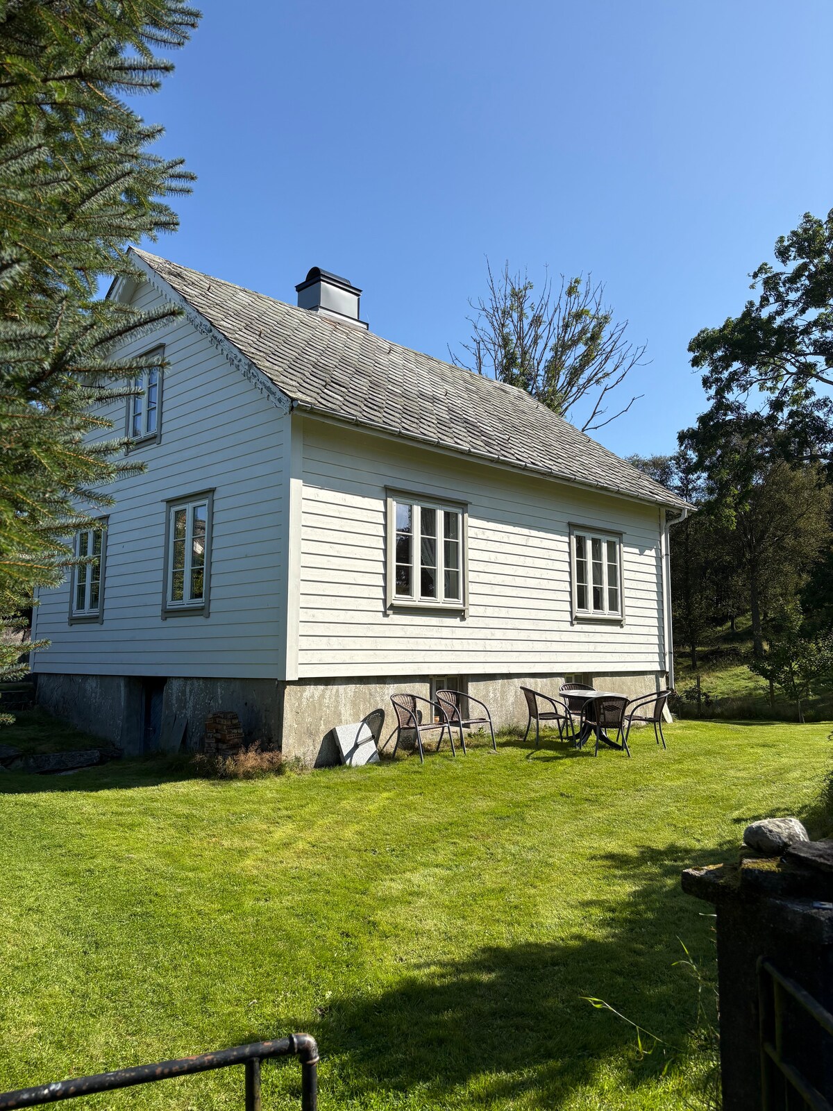 Southern idyll with beach line and private jetty. Charming 19th century village house for rent in Rekefjord. The outdoor areas offer good space and views: a large, sunny garden that goes all the way down to the sea, as well as terraces for lazy summer days. Perfect for holidays or a quiet break by the fjord. Authentic, peaceful and beautiful. The historical charm is well preserved – here you live in a real country house with character and soul. Welcome to beautiful Rekefjord – where life can be enjoyed at its own pace.