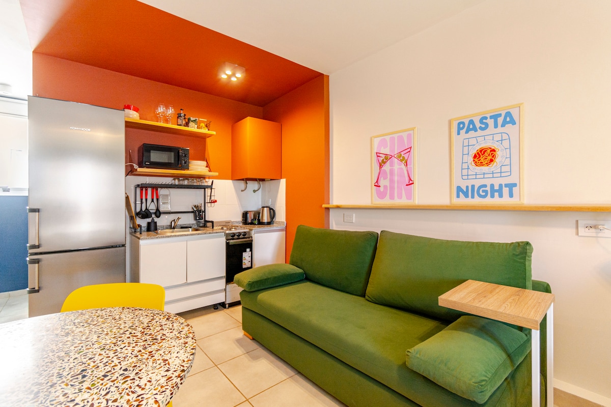 Enjoy Rosario, we are Mari and Hugo and we want to welcome you and have a good time! Our apartment is comfortable, safe, warm, new furniture, 1 double bed, 32" TV, living room with 2-person sofa, 50" LED TV. Separate kitchen, 300 meters from Bv. Oroño and Pichincha (culinary and entertainment hub). 250 meters from the river, 100 meters from a pharmacy, supermarket, 5 mini-market, ice cream parlor, laundry, everything you need. Covered parking on the same block for a fee. Free on the street after 8 pm and 24 hours on Saturdays and Sundays.