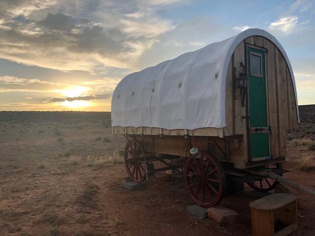 Yá'át'ééh (Hello in Navajo). We are a Native American owned large acreage working sheep ranch and off grid B&B offering guests a unique stay at our ranch utilizing quality canvas bell tents, covered wagons, a cabin, and a traditional Hogan on the Navajo Nation. In all there are 7 accommodations. Nicely spaced in a general area. Our ranch is beautifully located very near all areas of attraction - Antelope Canyon, the town of Page and Lake Powell are 15 minutes drive. Horseshoe Bend is only 5 minutes drive from the ranch. Both the north and south rims of the Grand Canyon are 2 hours. Monument Valley, Bryce, Zion, and Marble Canyon are well within driving distance.