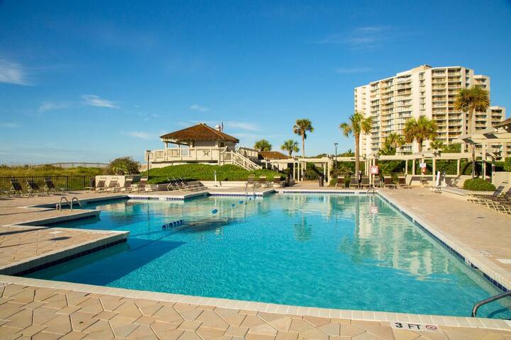 After Dune Delight is a fully remodeled condo in Ocean Creek Resort, a private 57 acre resort with many amenities, including 24/7 gated security, ocean front access, 6 pools and is located right across the street from Barefoot Landing, House of Blues and Dick's Last Resort. We are only a 3 minute walk to the ocean with private beach access! This is the perfect place for honeymoons, anniversaries, birthdays and romantic getaways. Stay at an ocean front resort without the ocean front resort rates!