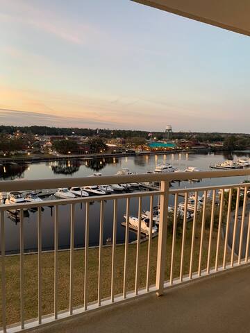 The space has a private balcony that overlooks the waterway and Barefoot Landing. Barefoot landing has some really amazing shops, restaurants, and also is home to the House of Blues which has concerts there weekly.