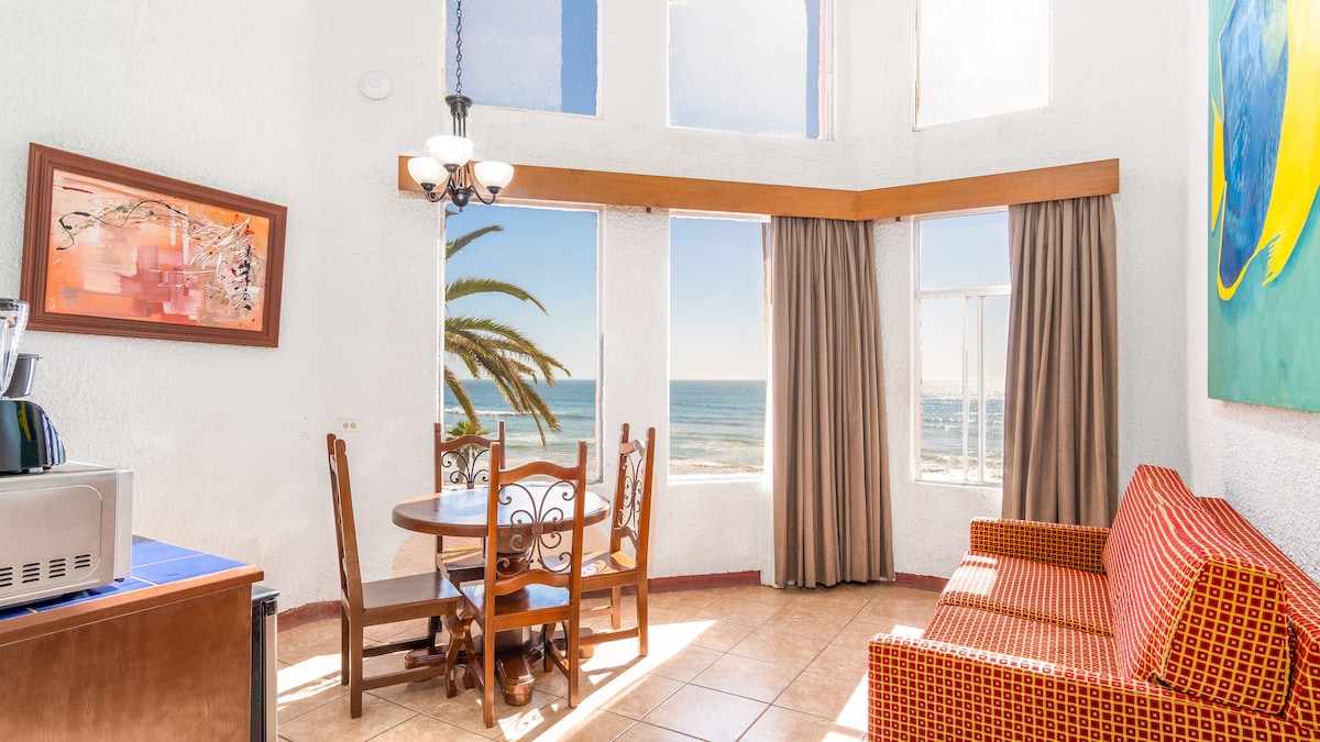 Best location in all of Rosarito! THE Rosarito Beach Hotel, room with incomparable view. Just seconds away from the beach, with all the luxuries of the Hotel: Room service, swimming pools, restaurants, hotel bars, my favorite the PIER breakfast and coffee shop. Or if you prefer, enjoy easy access to popular shops and all of Downtown Rosarito from this charming place to stay. All of downtown is walking distance from your Hotel Room!
