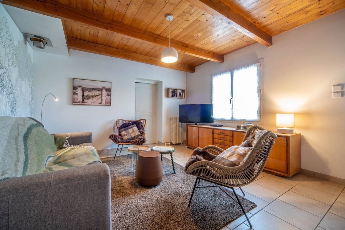 Winegrower's house, renovated in 2021, in the heart of the wine village of Givry, located on the Côte Chalonnaise Wine Route. 80 m2 cottage with shared inner courtyard where garden furniture, access to the barbecue, ping-pong table, as well as the heated pool (May to October depending on weather) are at your disposal Sleeps 4. Fully equipped kitchen, TV lounge and 2 bedrooms, 1 with bathroom. All amenities and activities (biking, tasting, etc.) nearby