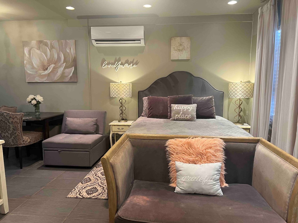 The Cozy Garage Studio, Comfort Meets Creativity! Welcome to a one-of-kind stay! This garage-style studio is the perfect mix of comfort, creativity and charm. Designed with a playful nod to its roots, you'll find fun touches throughout that make this space truly unforgettable. Restaurants, coffee shops & attractions. Whether you're exploring the city, or on a road trip or looking for a creative little retreat, this unique studio is the perfect pit stop. Pet Friendly & $55 Fee
