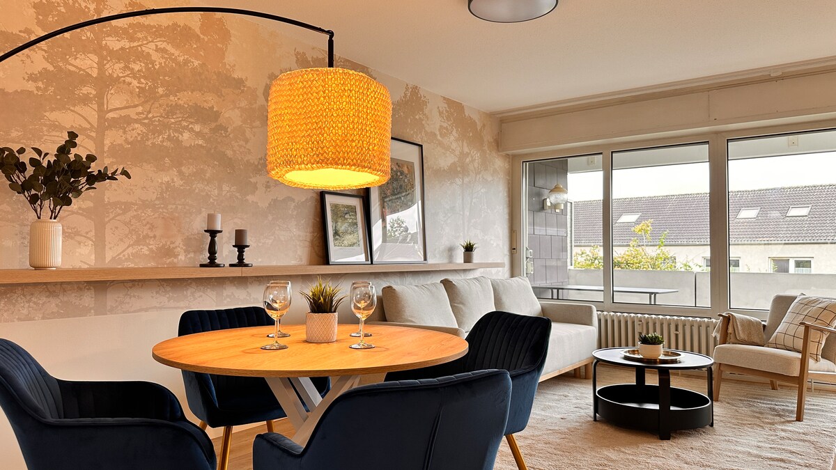 Are you looking for a retreat that combines tranquility in the countryside with the best transport links? Then you have come to the right place in our 2.5-room apartment in Duisburg Röttgersbach! A stylish and very cozy ambience awaits you on 65 sqm – modernly furnished with a light, Scandinavian flair. Here you can relax, breathe deeply and leave everyday life behind.