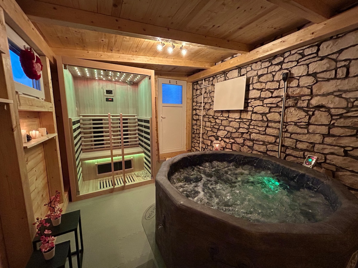 Uživajte u spokoju vlastitog privatnog odmora uz praktičnost gradskog života za nekoliko minuta! Ovaj apartman s grijanim bazenom u potpunosti je opremljen. Izvana ćete imati privatno parkiralište, na raspolaganju je bazen,prostor za opuštanje sa ležaljkama i zatvorena ljetna kuhinja sa kaminom, kao i prostor za objedovanje tijekom boravka. Smještaj nudi potpunu udobnost i privatnost,uključujući luksuzni namještaj, dvije potpuno opremljene kuhinje, prostrane spavaće sobe i kupaonicu.