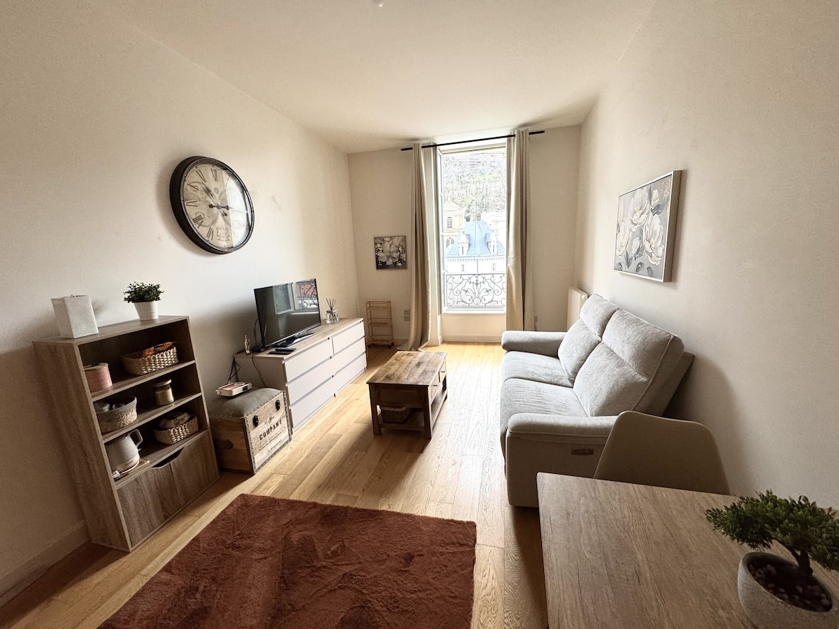 Elegant T2 recently redone close to the Royatonic thermal baths and the Royat casino (300 m) on a high floor with unobstructed views. Ideal location bordering Royat Chamalieres Clermont-Fd Free street parking and several parking lots in the immediate vicinity. Bus B 500 m direct to Place de Jaude and Clermont-Ferrand train station. Puy de Dôme 10 min by car Vulcania 15 minutes away Super Besse 50 minutes away Non-smoking apartment (smoking on balcony is ok 3rd floor with stairs.