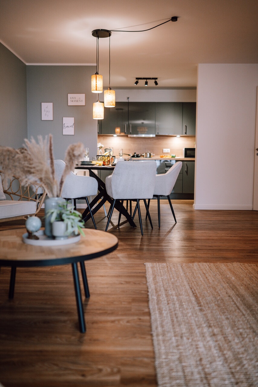 Experience incomparable style on 90 square meters in the Mokka Suite Neumünster, minutes from the designer outlet center, train station and the Holstenhallen. Two bedrooms with box spring beds guarantee relaxing nights, the shower bathroom exudes modern charm with black accents. A fully equipped kitchen and smart TV ensure a comfortable stay. Private parking available. Location (in minutes) Designer Outlet Center: 5 Train station: 3 Holstenhallen: 7 Hamburg & Kiel: 35