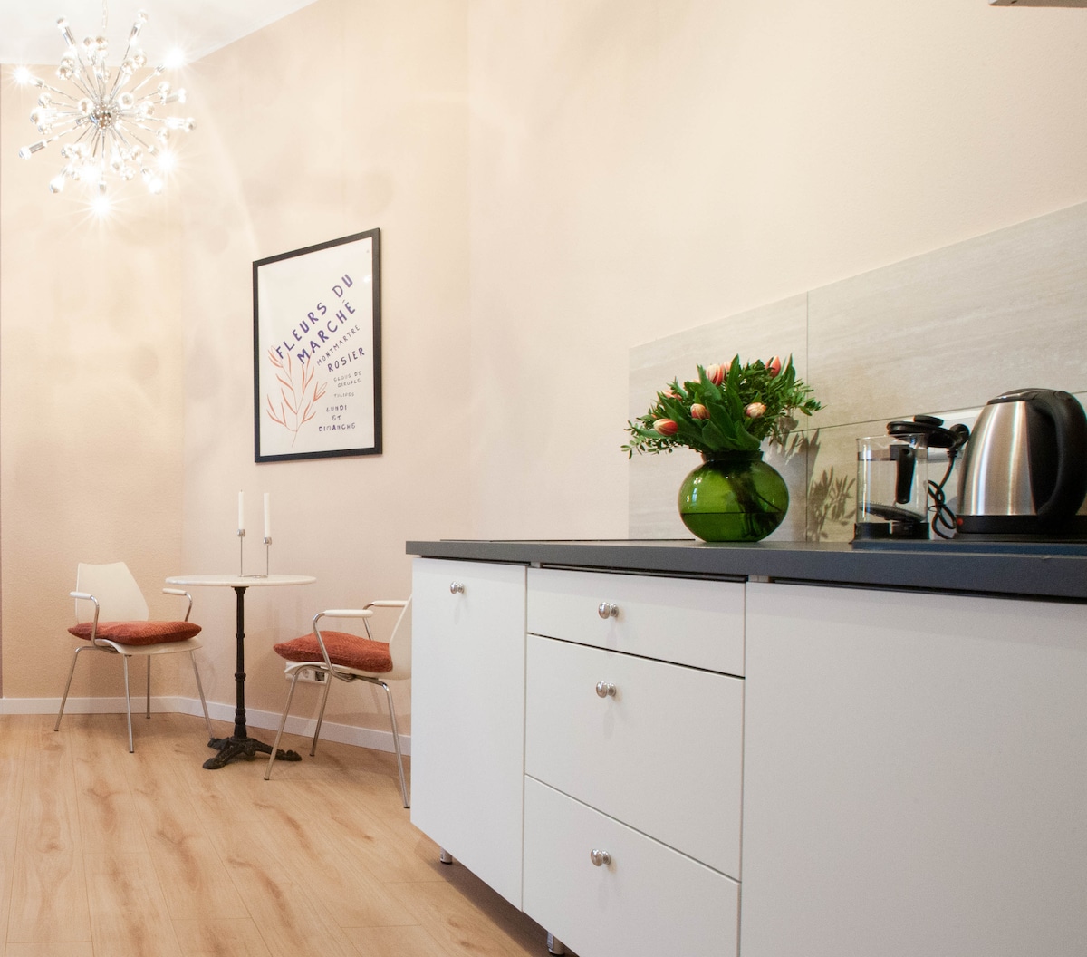 Hier erwartet Dich ein Mini- Apartment (18qm) mit allem was man für einen Aufenthalt von ein paar Tagen braucht. Bett, Küche und Dusche sind offen gestaltet und sorgen dafür, daß man sich nicht eingeengt fühlt, trotz der wenigen Quadratmeter. Das WC hat eine eigene Türe. Gelegen im 4. Stock eines sanierten Altbaus in der beliebten Winsstraße, eigener Eingang und Aussicht nach hinten ins Grüne (kein Aufzug). Auch wir wohnen in dem Haus und helfen gerne bei Fragen oder mit Tipps.