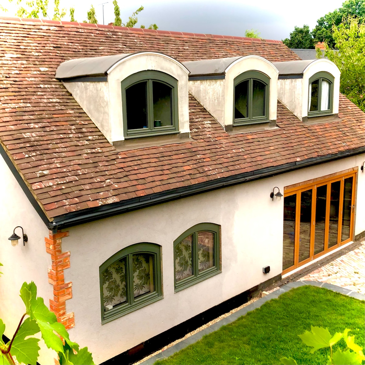 Relax and enjoy your own bright and airy space in a quiet residential area, close to the Downs and just a 20min walk from Guildford High Street. The french doors from the living room open onto a private decking with outdoor dining. There's a fully equipped kitchen area with dining table, a shower room and bedroom. A perfect base to explore the Surrey Hills or RHS Wisley and only 40min drive to Heathrow or Gatwick. Fast Wifi & driveway parking. EV charge available on request at cost.