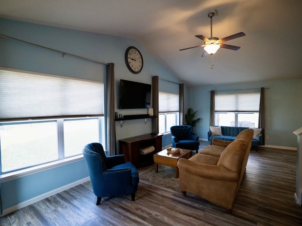 Overlooking a 3/4-acre pond, this 550 sq ft lower-level studio has a private patio, 2 entrances, full bath, queen bed and newly installed kitchen (after 3/15/24). TV has access to Netflix, Disney plus, Prime Video, and other Roku channels (no cable). Wi-Fi is continuous with listing and space has private access to heat/AC controls. Entrance is via keypad lock. Close to Canandaigua, Cummings Nature Center, CMAC, and wineries/microbreweries. Short drive to Letchworth State Park and Victor
