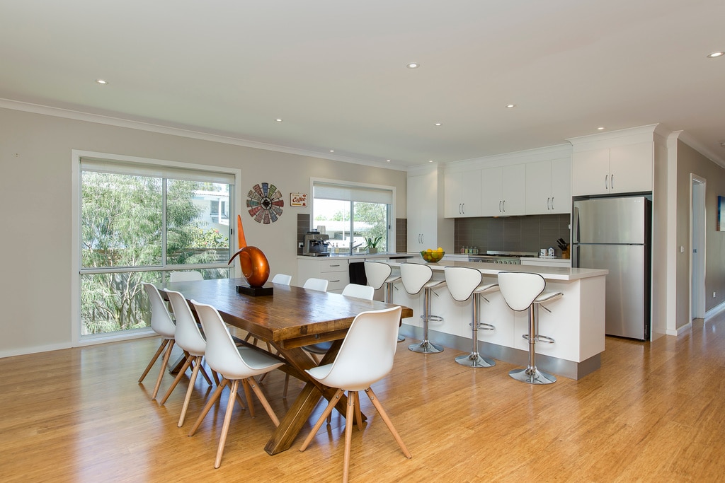 Welcome to The Glasshouse! A light-filled coastal retreat designed for slow mornings, long lunches & relaxed evenings by the fire. Set among native trees between Blairgowrie’s front and back beaches, this architecturally designed one-of-a-kind home is all about space, light & connection to the outdoors. Expanses of glass invite the landscape in, while warm timber finishes keep the home feeling grounded and intimate. It’s the kind of place where you arrive, exhale, & instantly feel on holiday.
