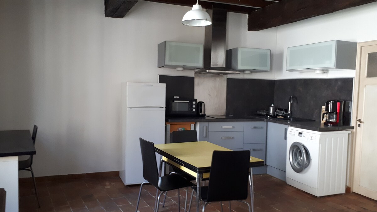 Flat 2 rooms, 40 m², located on the groud floor of a 17th century house including one living room with a dining space, a sleeping room, kitchen, bathroom with shower, all equiped, combines the charm of ancient houses with authenticity and contemporary comfort; located in a calm street of the Roquette district close to city center. Ideal for a couple but can accomodate up to 3 persons or two kids thanks to a large 140 sofa bed . You can eat outside in a shaded area at the corner of the house.