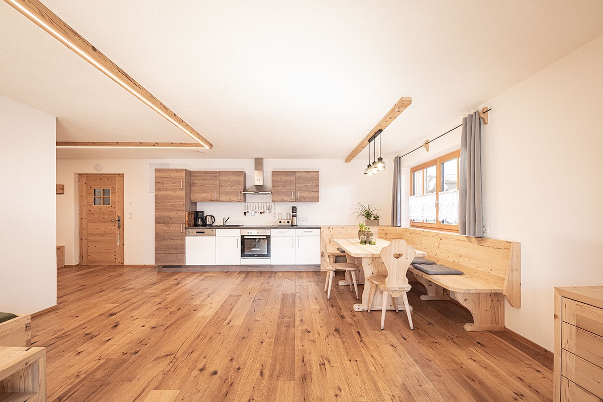 Large cozy traditional apartment on the first floor in the mountains. 1 min walk to the bus (ski bus in winter) and by bus you can reach 2 ski resorts within 5-10 min (Kronplatz 30 min). Families or groups of friends are always welcome, we have a beautiful garden and a beautiful view of the mountains. Sights easily accessible by bus (Burgtaufers, Nativity Museum, Mining Museum, Climate Tunnel, Mineral Museum...) and there are also many hiking trails that we recommend