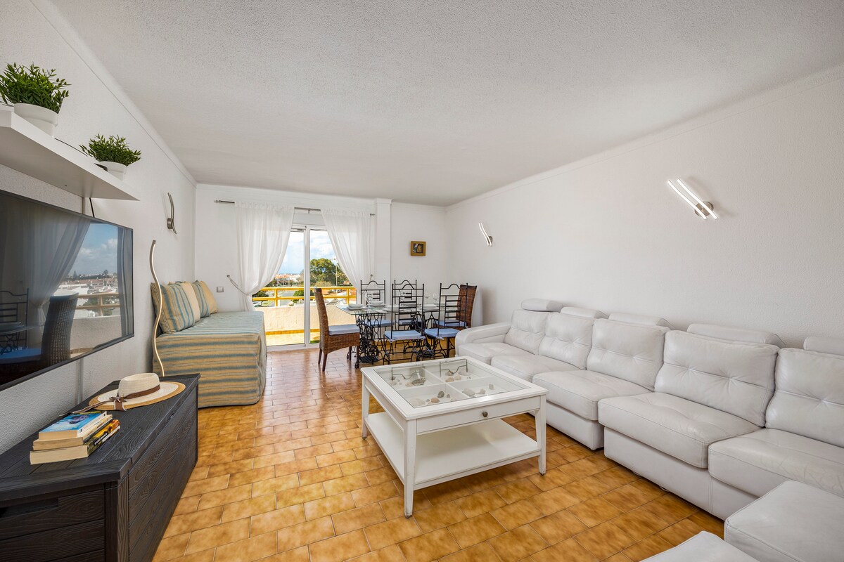 One-bedroom apartment in a gated community, on the 1st line of Praia da Alagoa, with sea view, swimming pool, private parking, 60 M2 terrace, 1 bedroom with double bed and TV, living room with sofa and double bed and TV, toilet and fully equipped kitchen, air conditioning and Wi-Fi
